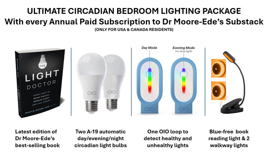 *NOTE: The Ultimate Circadian Bedroom Lighting Package can only be shipped to USA and Canada residents because of electrical compatibility. Residents of other countries will be shipped a signed copy of the latest edition of THE LIGHT DOCTOR plus a blue-free book reading light.