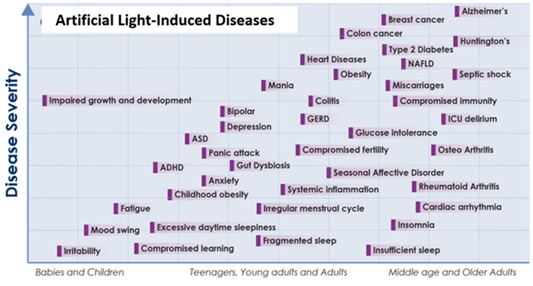 Figure 3: The health impact of exposure to the wrong light at the wrong time (Adapted from Sulli et al (2018) Trends Pharmacol. Science)